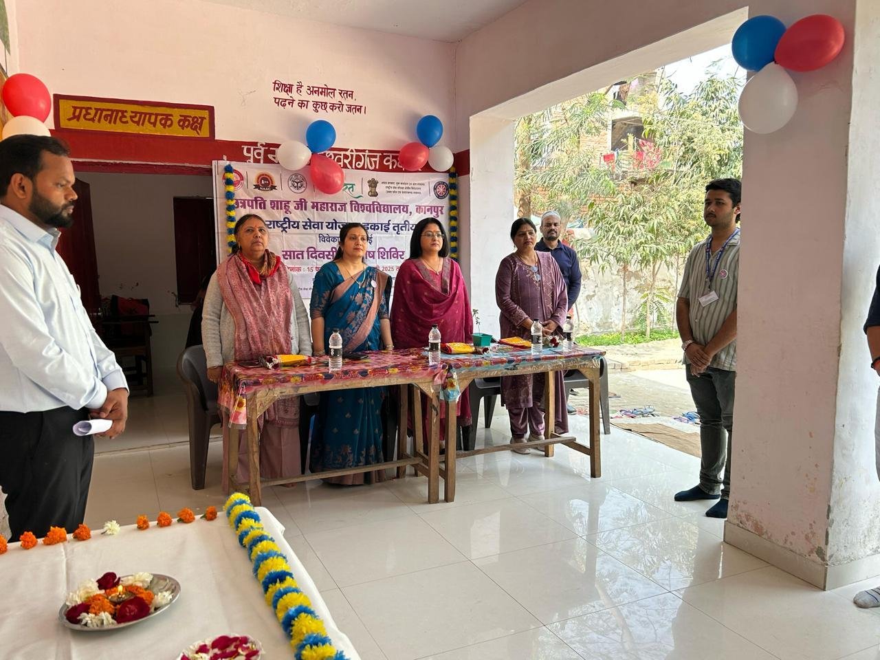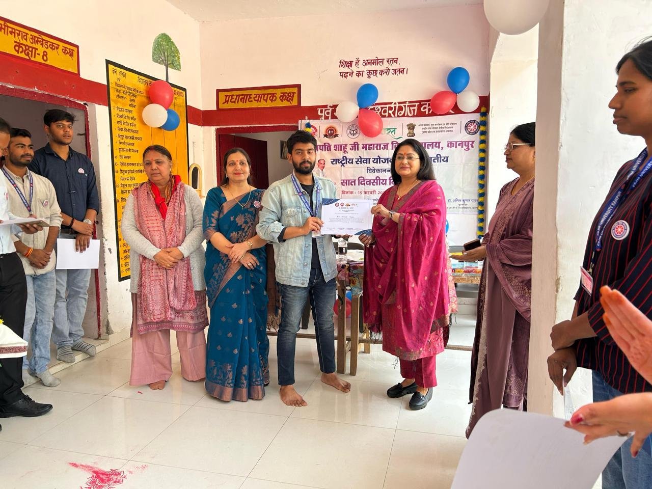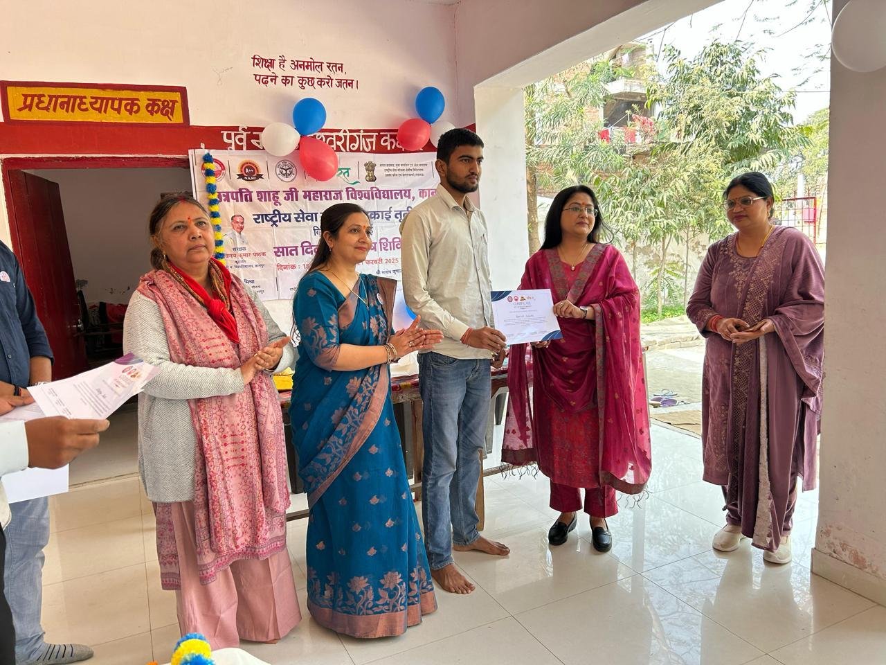 CSJM University’s Department of Education, under the leadership of HOD Dr. Sneh Pandey, organized a 7-day NSS camp in the adopted village of Ishawaipur as part of the National Service initiative. The camp aimed at spreading awareness on various important topics among the villagers with participation from students across diverse fields of engineering and humanities. Today marks the concluding day of the camp, where our Director, Ms. Ruma Chaturvedi, was invited as the Chief Guest to interact and encourage the students by awarding them certificates for their commendable efforts.