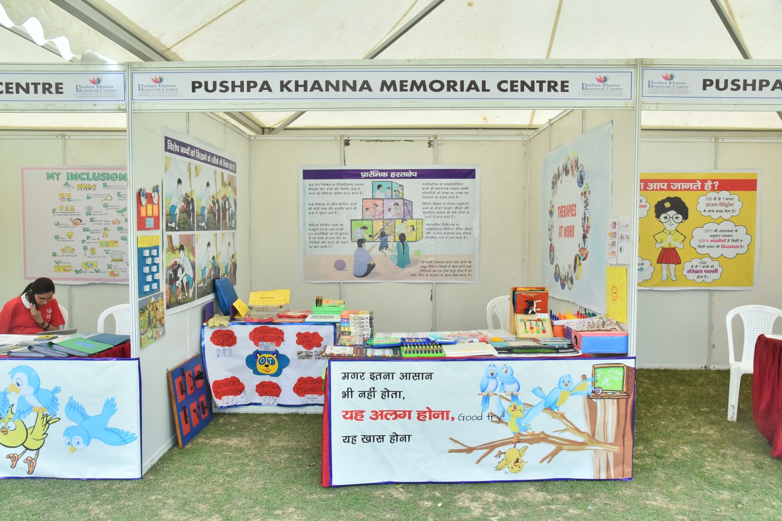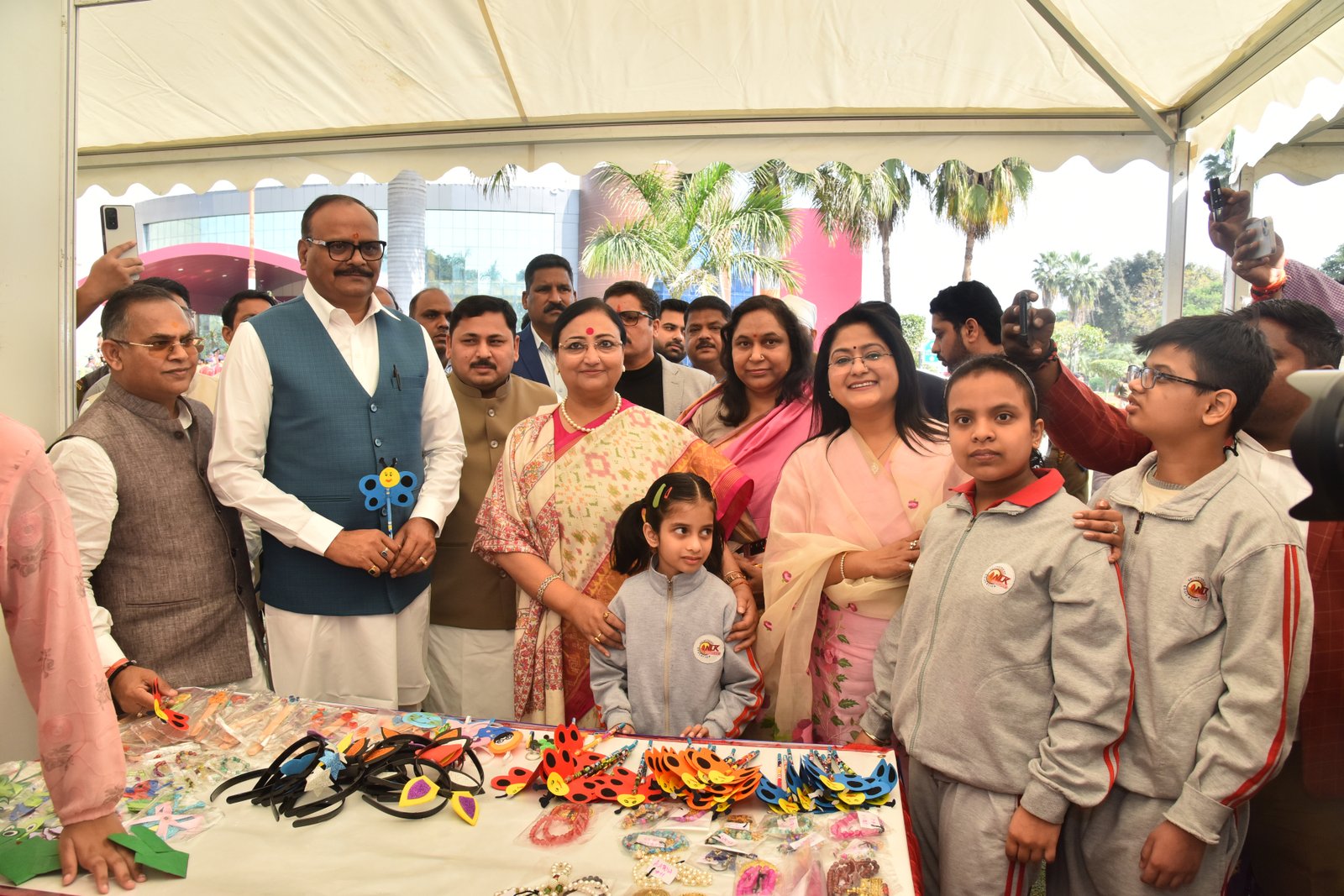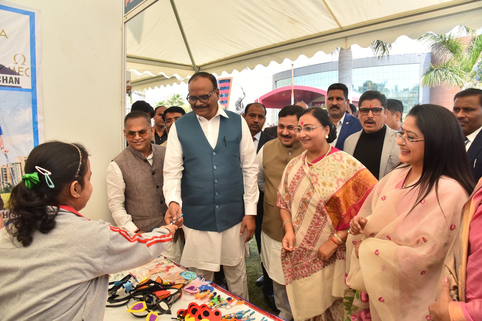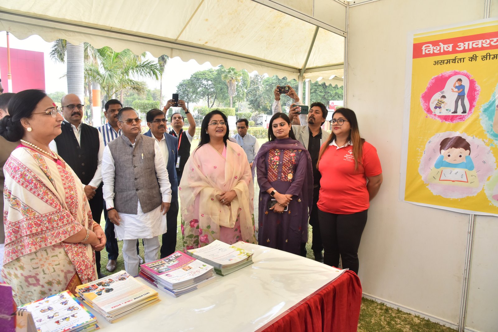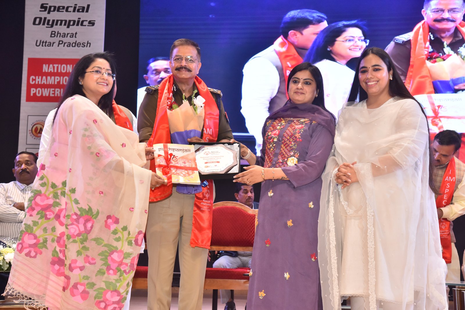 We proudly participated in the Special Olympics Bharat National Championship Powerlifting event held at CSJM University's Virangna Lakshmi Bai Auditorium! At the stalls of the Pushpa Khanna Memorial Centre, we showcased awareness initiatives, intervention resources, inclusion methodologies, and handcrafted items made by children. Our esteemed guests, Dr. Malika Nadda and Deputy Chief Minister Shri Brijesh Pathak, engaged with the children, commending their participation and dedication. Ms. Ruma Chaturvedi, our Director, presented Dr. Malika Nadda with a portrait crafted by the special needs children of PKMC, using thumb impressions, bottle cap impressions, and straw, showcasing their remarkable creativity and talent.
